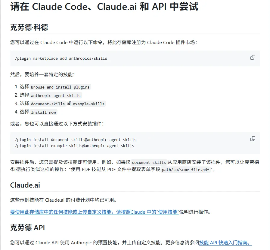 官方技能仓库:https://github.com/anthropics/skills(含 PDF处理、Excel、skill-creator等)。